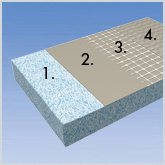 För plattans eller konfektionens beläggning används bruk i två lager: Ett lager kontaktbruk och ett lager täckande bruk.